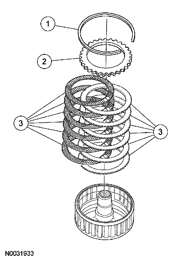 6. NOTE: Before assembly, soak new clutch discs in clean automatic transmission fluid.