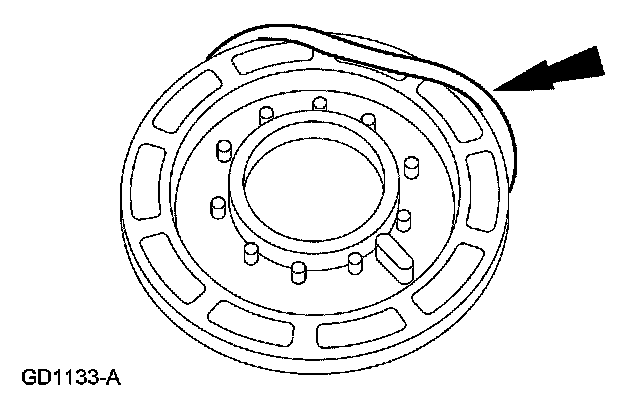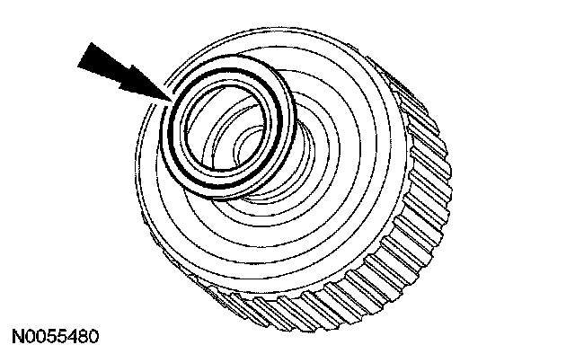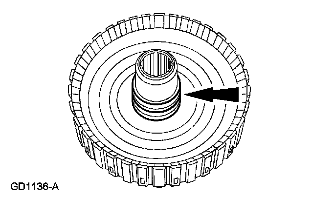 2. Install the clutch piston outer seal so that when the piston is installed, the sealing lip points toward the bottom of the cylinder.