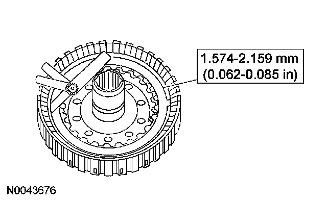 7. Use a feeler gauge to check the clearance between the clutch pack selective retaining ring and the pressure plate.