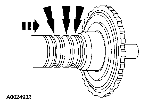 12. Check the clutch hub thrust surfaces for scores and clutch hub splines for wear.