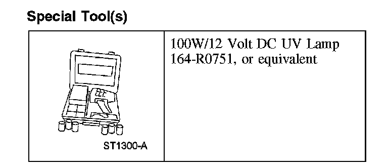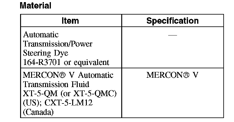 Automatic Transmission/Power Steering Dye 164-R3701 or equivalent (specifically formulated for ATF) is used to detect a transmission fluid leak.