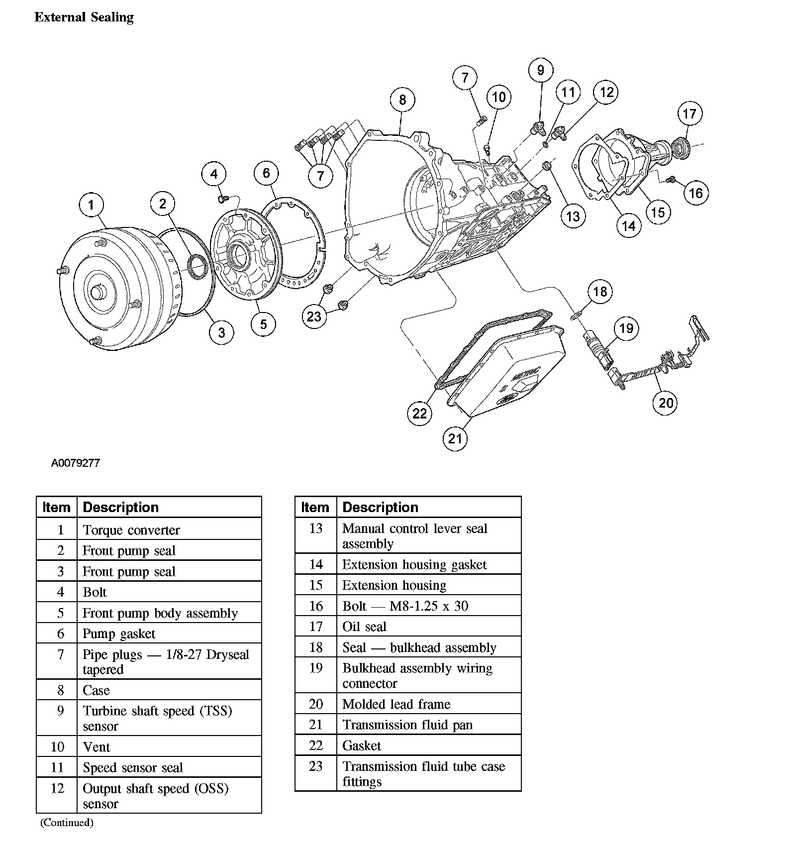 CAUTION: Do not try to stop a fluid leak by increasing the torque beyond specifications. This may cause damage to the transmission case threads.