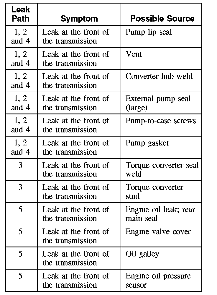Leakage at the front of the transmission, as evidenced by fluid around the torque converter housing part of the case, may have several sources. By careful observation, it is possible in many instances to pinpoint the source of the leak before removing the transmission from the vehicle.