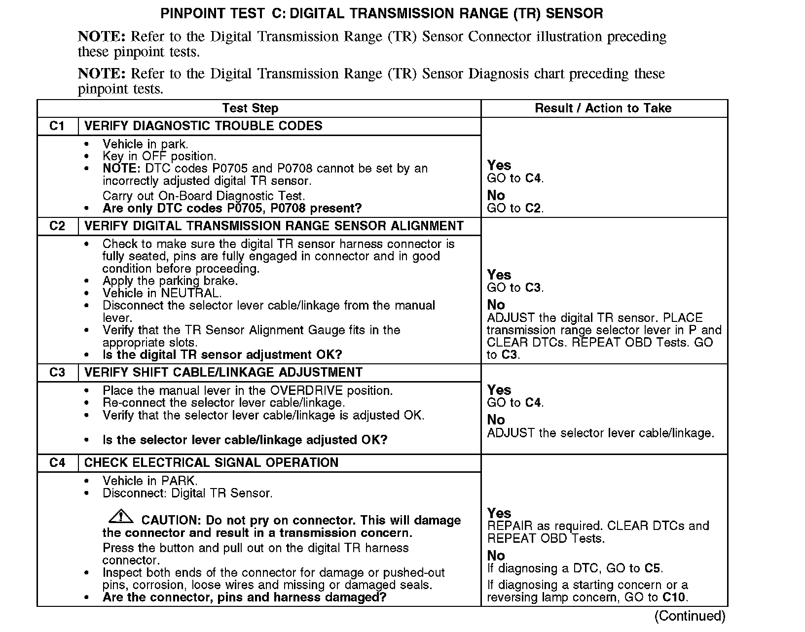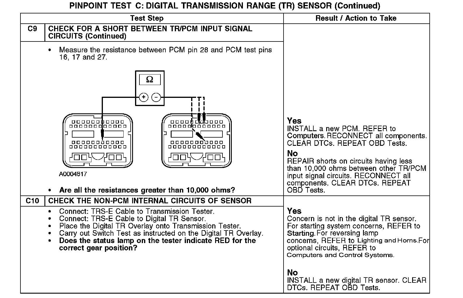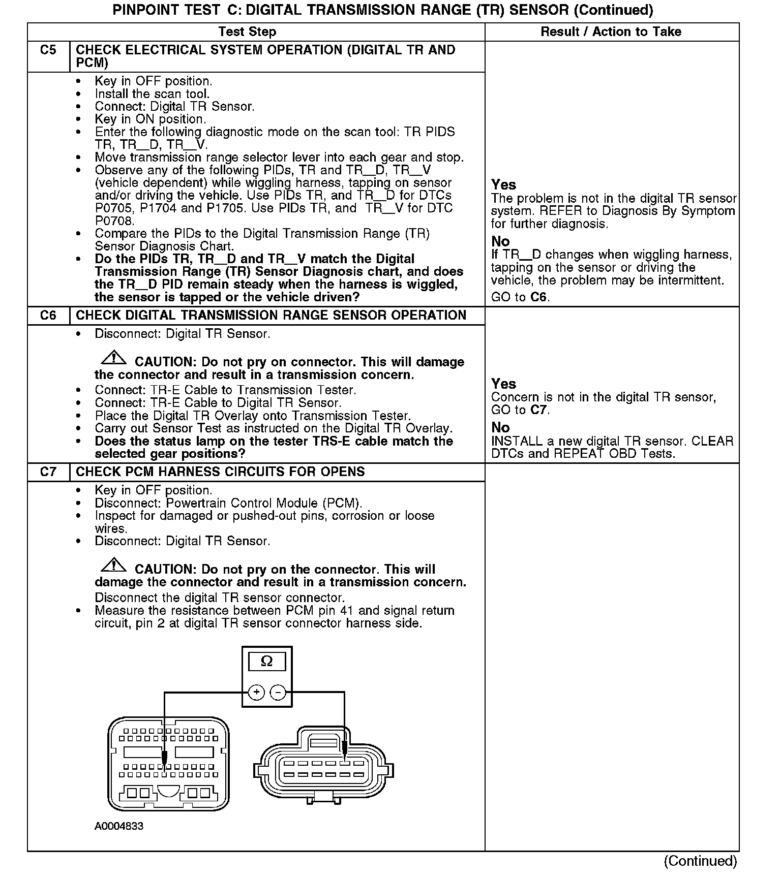 TEST C: DIGITAL TRANSMISSION RANGE (TR) SENSOR