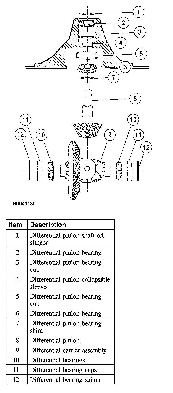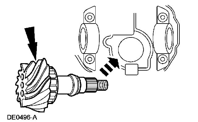 8. NOTE: Drive pinion bearing adjustment shims must be flat and clean.