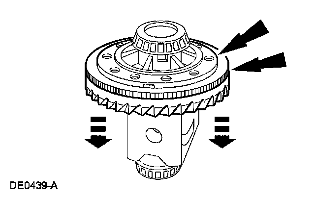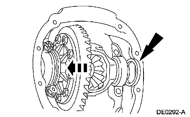 NOTE: Apply pressure toward the LH side to make sure the left differential bearing cup seats correctly.