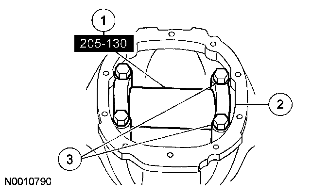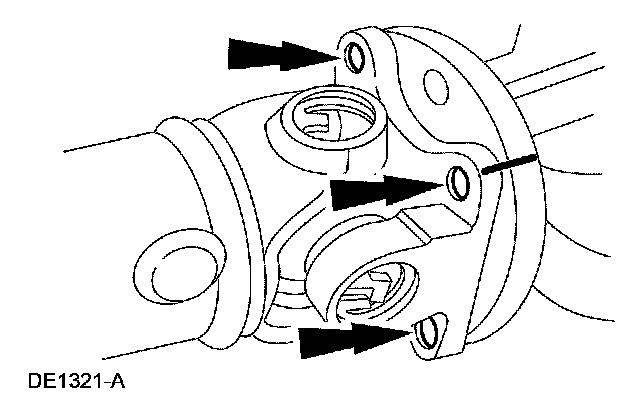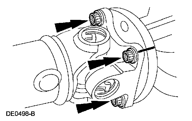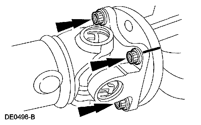 40. CAUTION: The driveshaft centering socket yoke fits tightly on the pinion flange pilot. To make sure that the driveshaft centering socket yoke seats squarely on the pinion flange, tighten the driveshaft flange bolts evenly in a cross pattern.