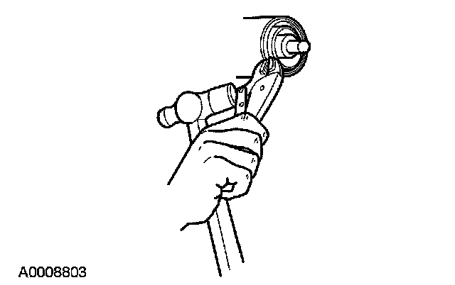 11. Force up on the metal flange of the drive pinion seal. Install gripping pliers and strike with a hammer until the drive pinion seal is removed.