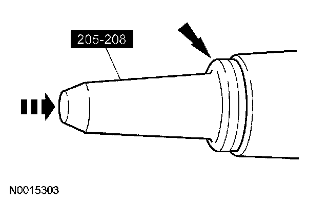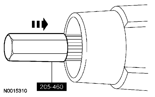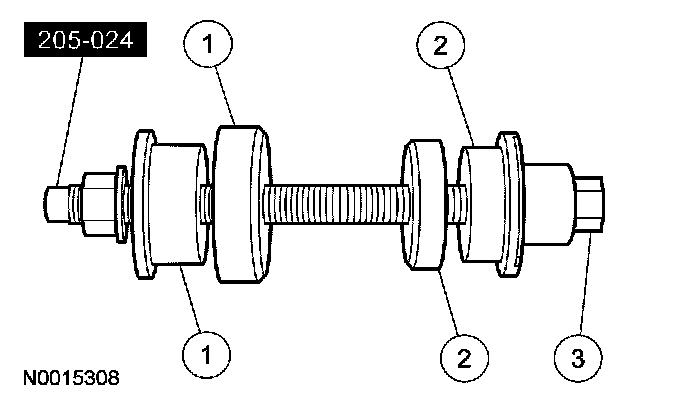 1. Position the special tool and the inner and outer drive pinion bearing cups in their respective bores.