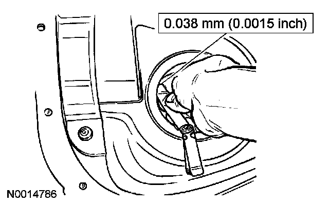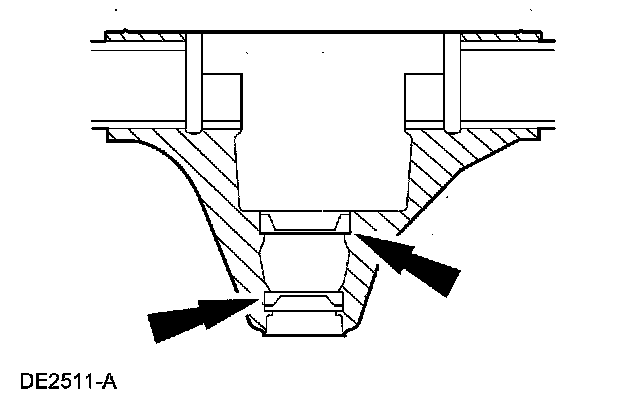 3. NOTE: If a feeler gauge can be inserted between a drive pinion bearing cup and the bottom of its bore at any point around the drive pinion bearing cup, the drive pinion bearing cup is not correctly seated.