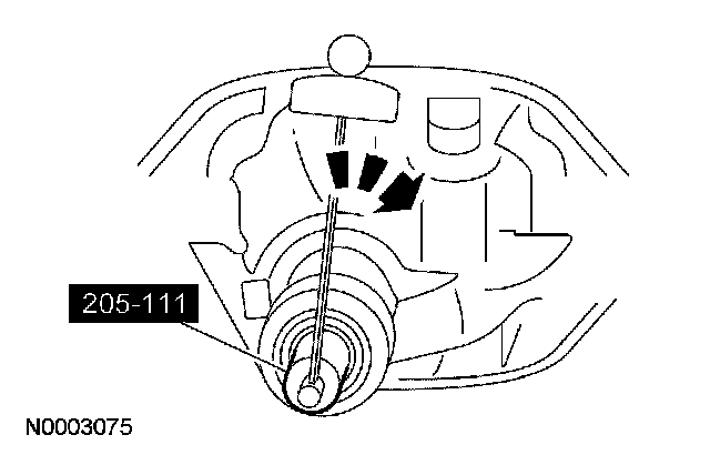 ^ Rotate the pinion occasionally to make sure the differential pinion bearings are seating correctly. Take frequent differential pinion bearing preload checks by rotating the differential pinion with a Nm (lb-in) torque wrench. Tighten the pinion nut in small increments to avoid excessive pinion bearing preload. Tighten the pinion nut until the drive pinion bearing preload is in specification.