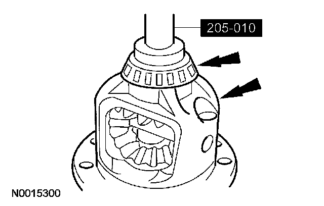 2 Place the special tool (outer) on the outer drive pinion bearing cup.
