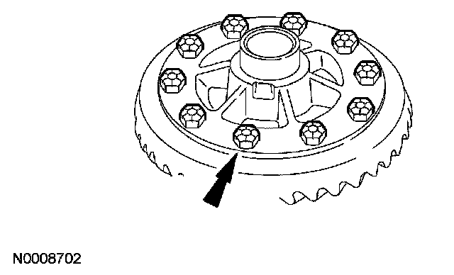 17. NOTE: Apply stud and bearing mount to the differential ring gear bolts.