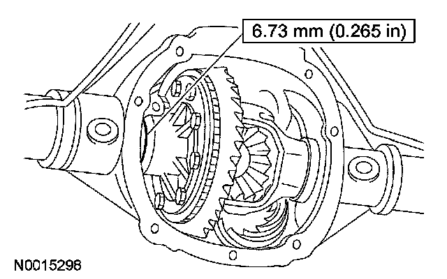 19. Install a differential bearing shim of the shown dimension on the left side.