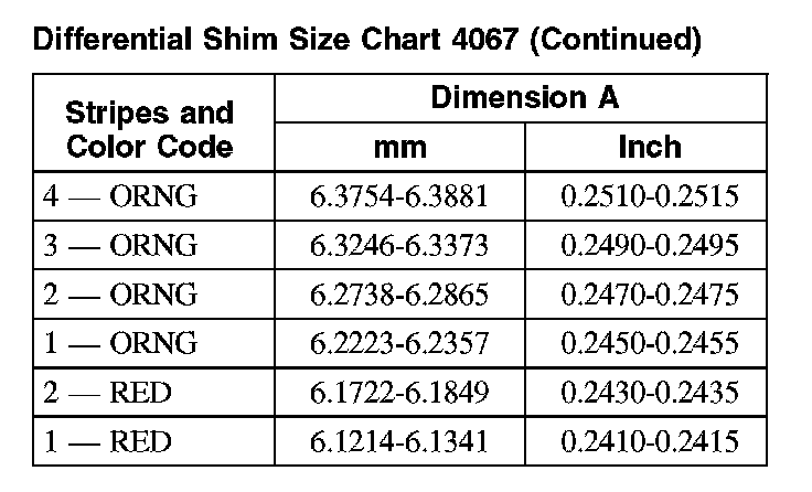Differential Shim Size Chart 4067