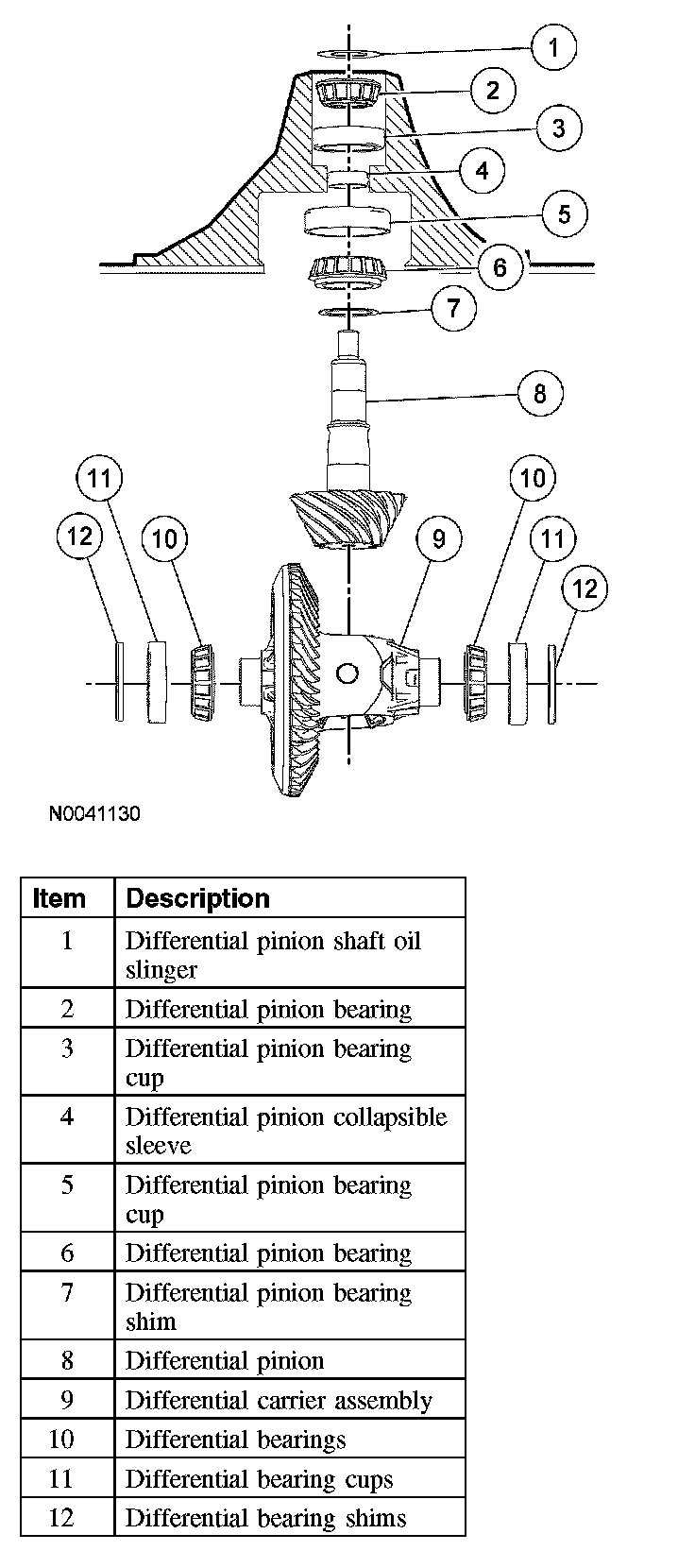 8. NOTE: Drive pinion bearing adjustment shims must be flat and clean.