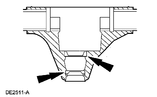 15. Using a brass drift, remove the pinion bearing cups by tapping alternately on opposite sides of the bearing cups.