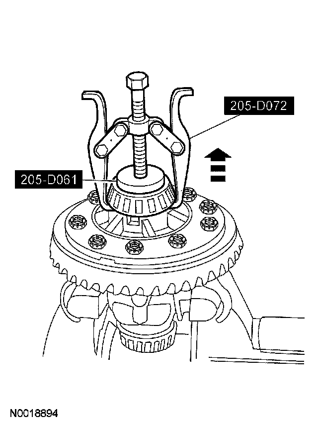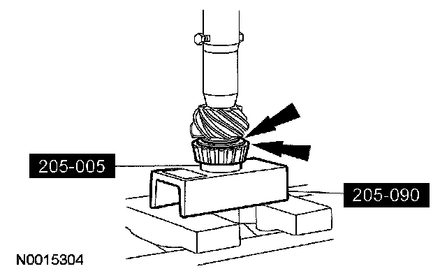 14. Using the special tool and a suitable press, remove the inner pinion bearing.