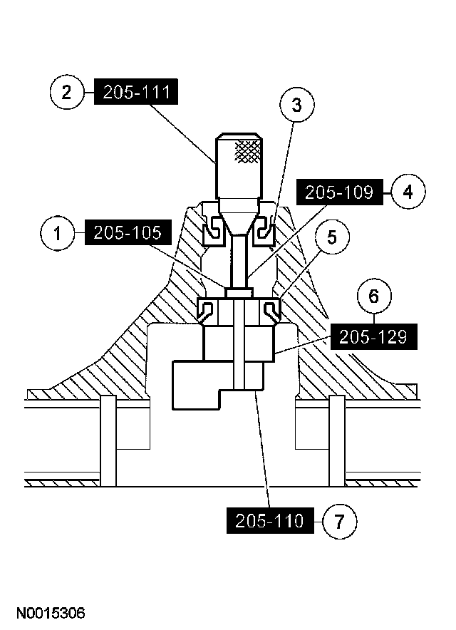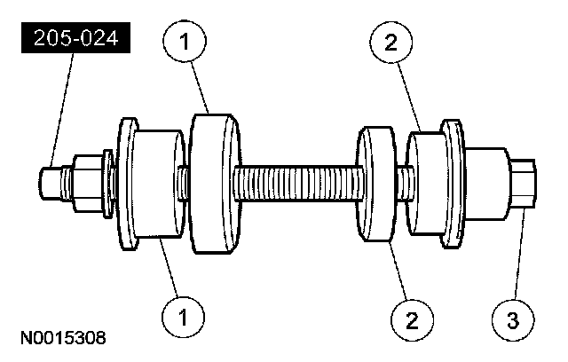 2. Position the special tool and the inner and outer bearing cups in their respective bores.