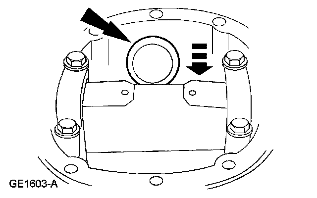 18. NOTE: Apply pressure toward the LH side to make sure the left differential bearing cup is seated.