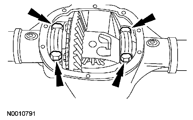 3 Install the differential bearing cap bolts.