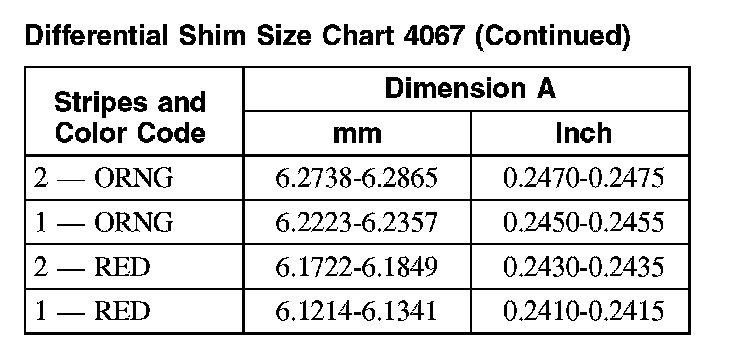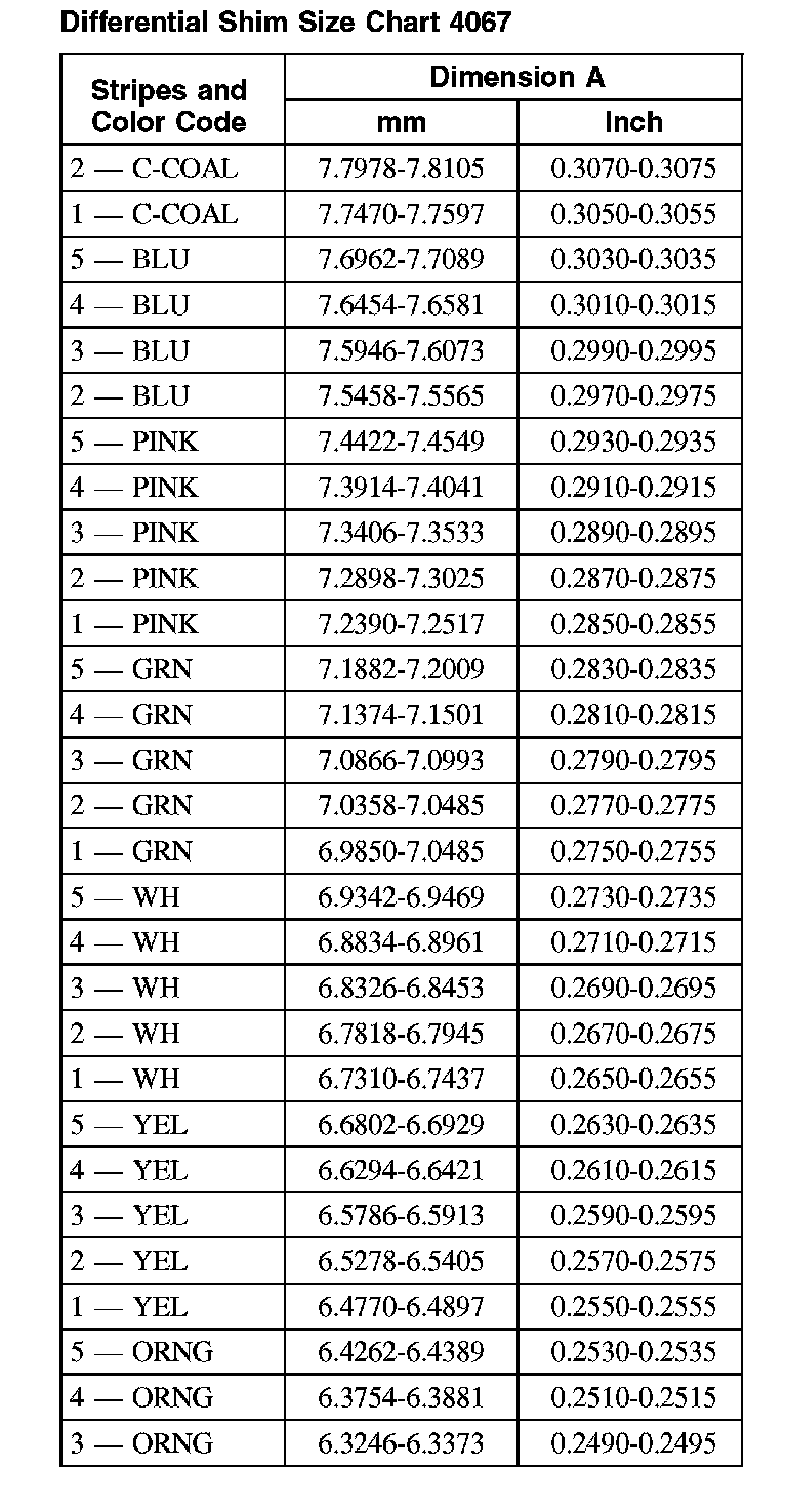 Differential Shim Size Chart 4067: