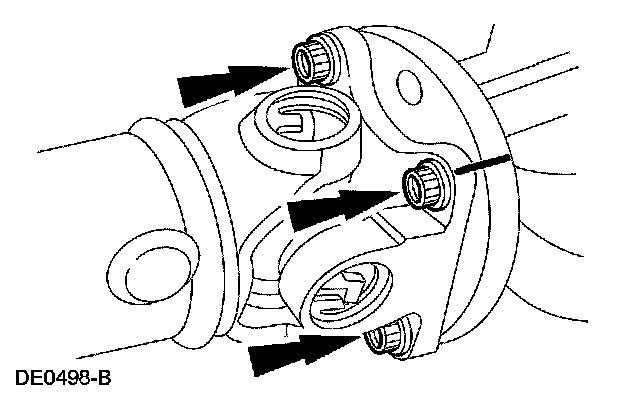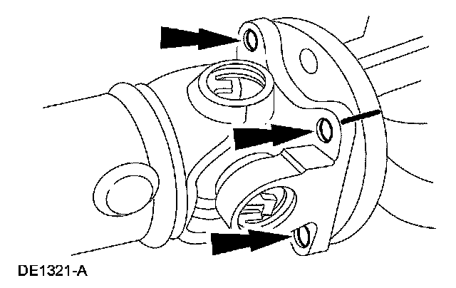 36. CAUTION: The driveshaft centering socket yoke fits tightly on the pinion flange pilot. To make sure that the driveshaft centering socket yoke seats squarely on the pinion flange, tighten the driveshaft flange bolts evenly in a cross pattern.