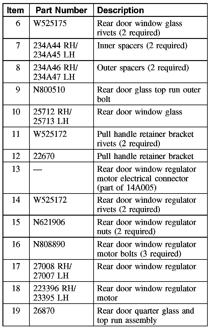 WINDOW GLASS - REAR DOORSpecial Tool(s):