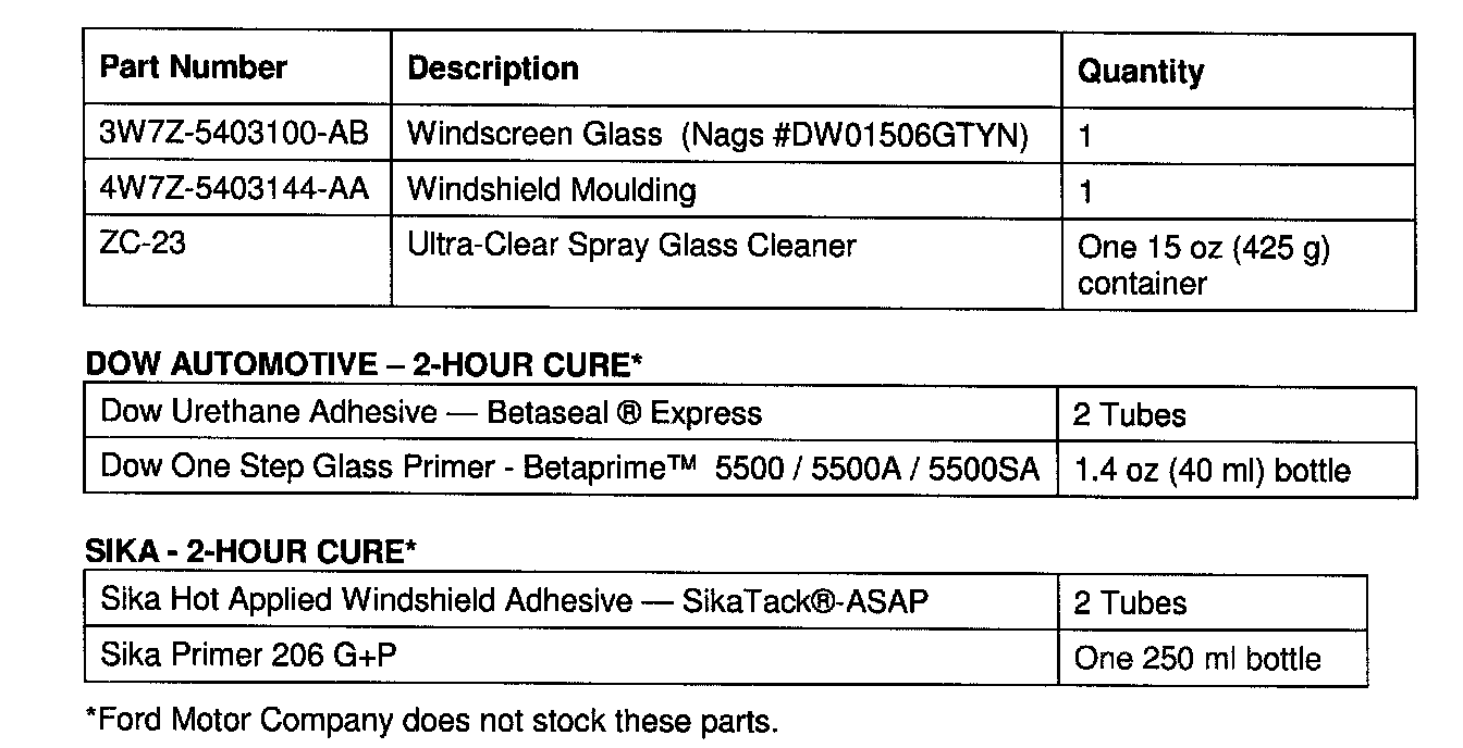 When replacing a windshield under this recall, the following parts must be used to ensure proper retention of the windshield. Parts will not be direct shipped for this program. Order your part requirements through normal order processing channels.