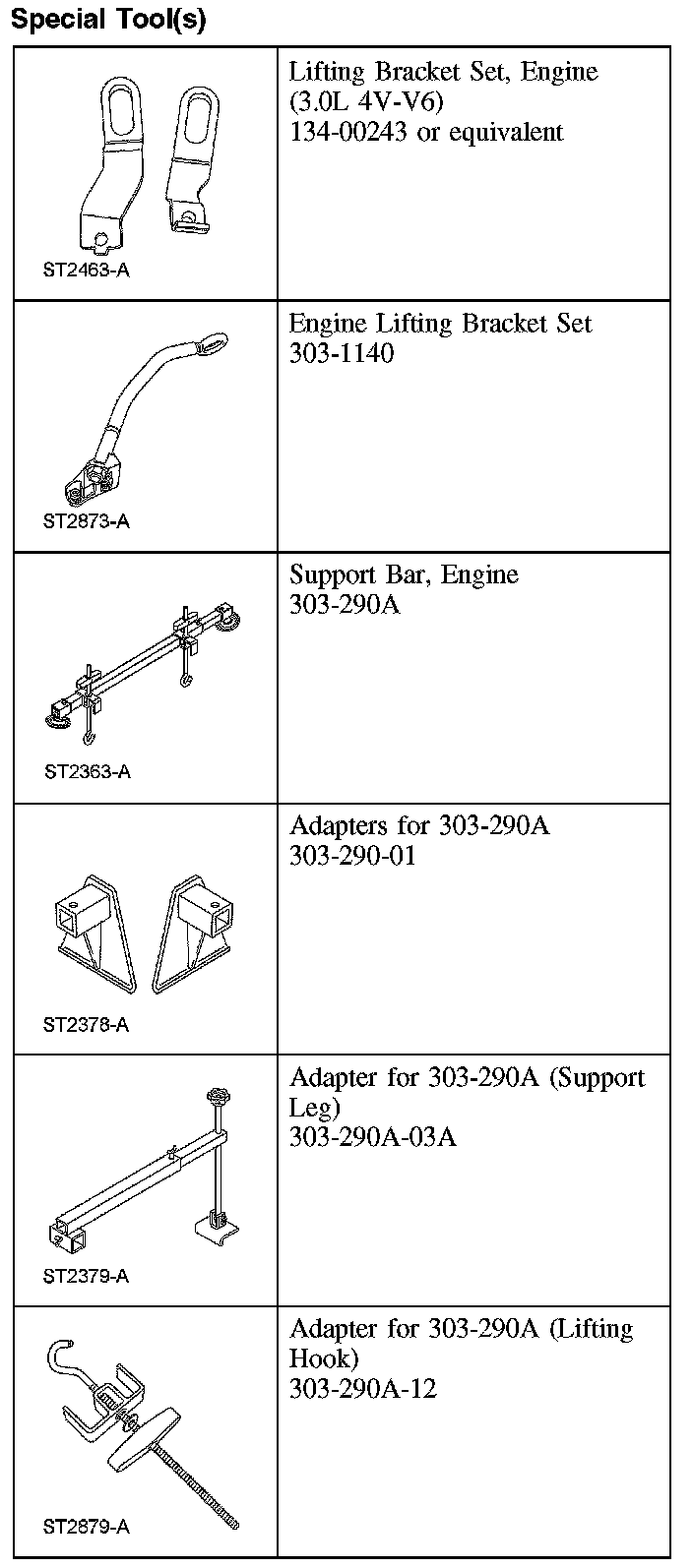 13. Install the special tools to support the engine assembly.