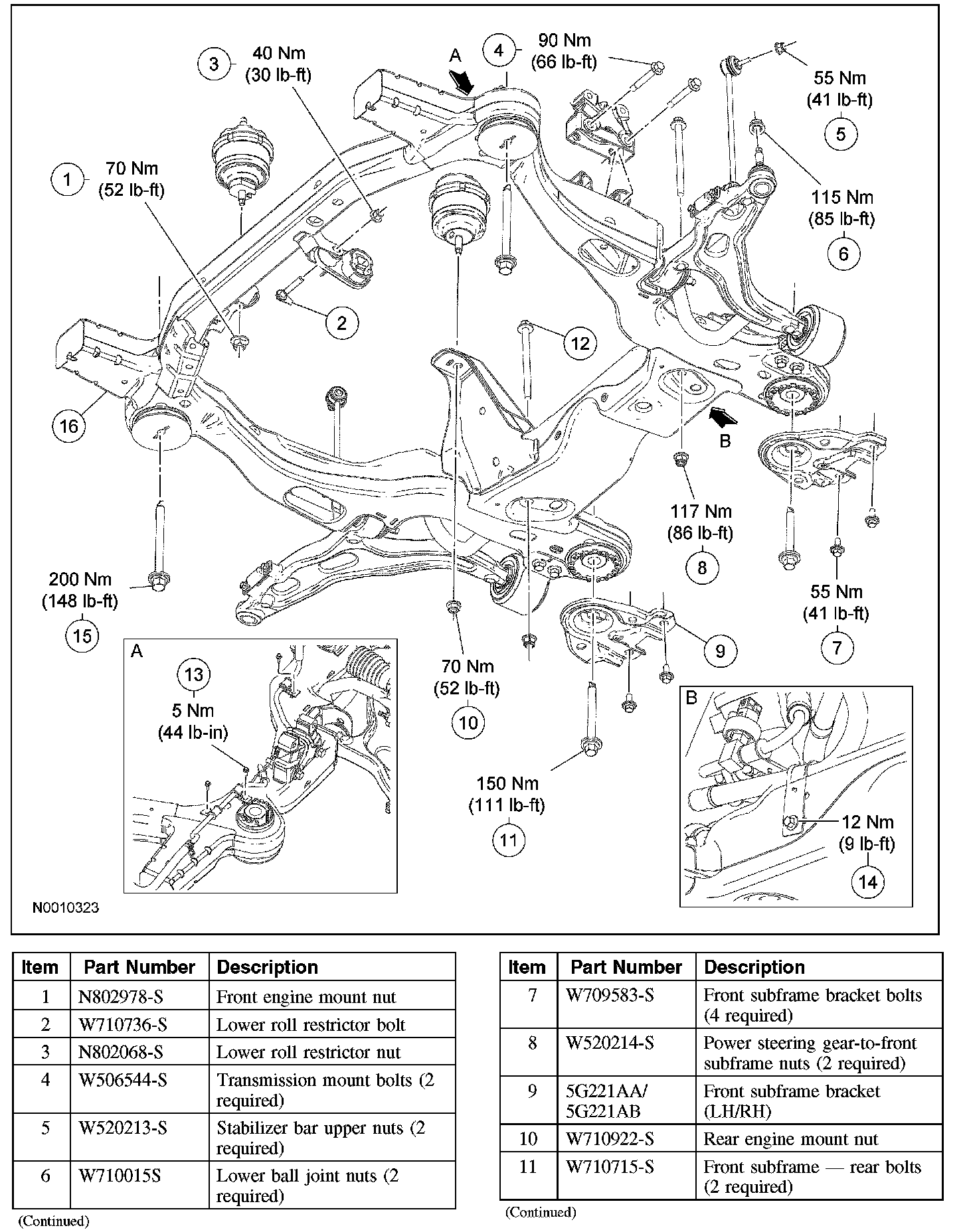 - To install, tighten the front subframe front bolts to 200 Nm (148 lb-ft).