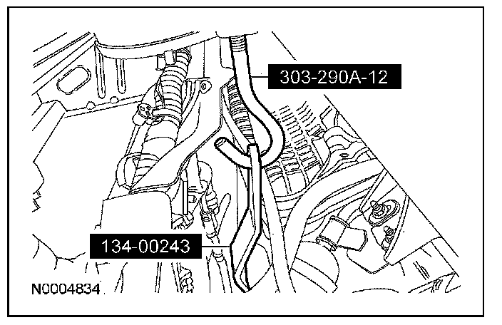 - Support the power steering gear to the underbody of the vehicle with mechanic's wire.