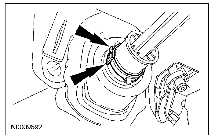 - Make sure the intermediate shaft boot bearing is correctly seated before installing the intermediate shaft boot bearing clamp.