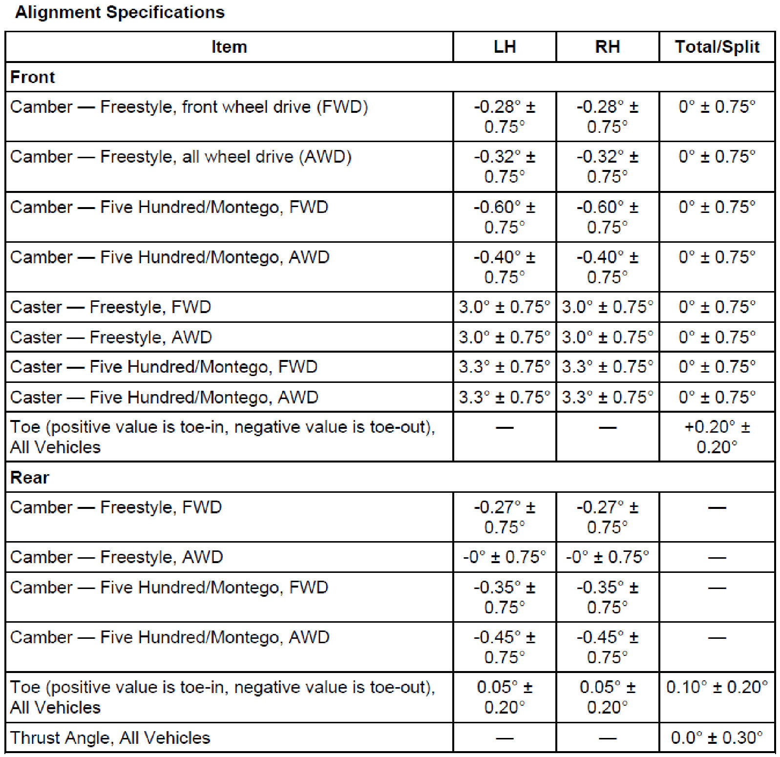 Five Hundred 2WD V6-3.0L VIN 1