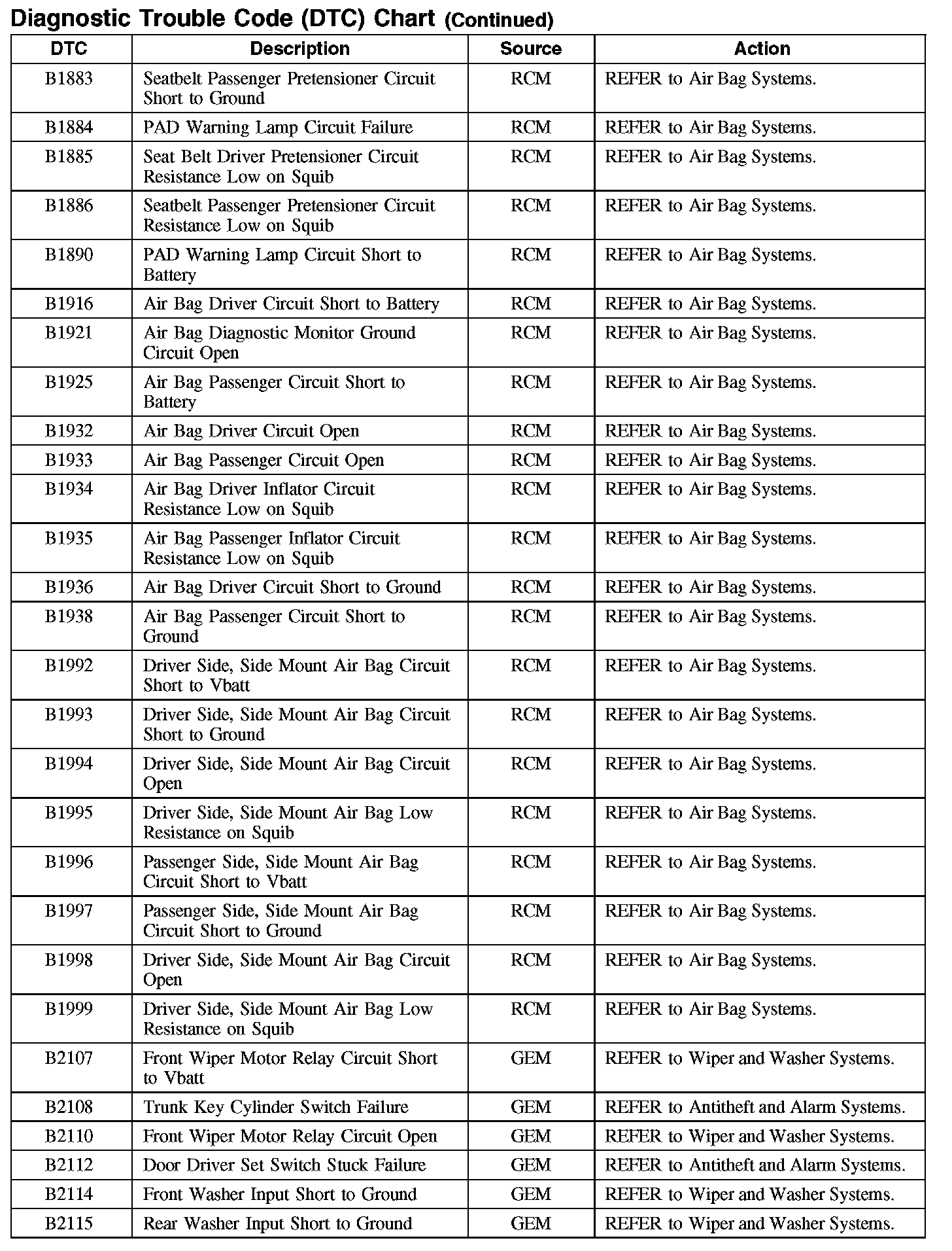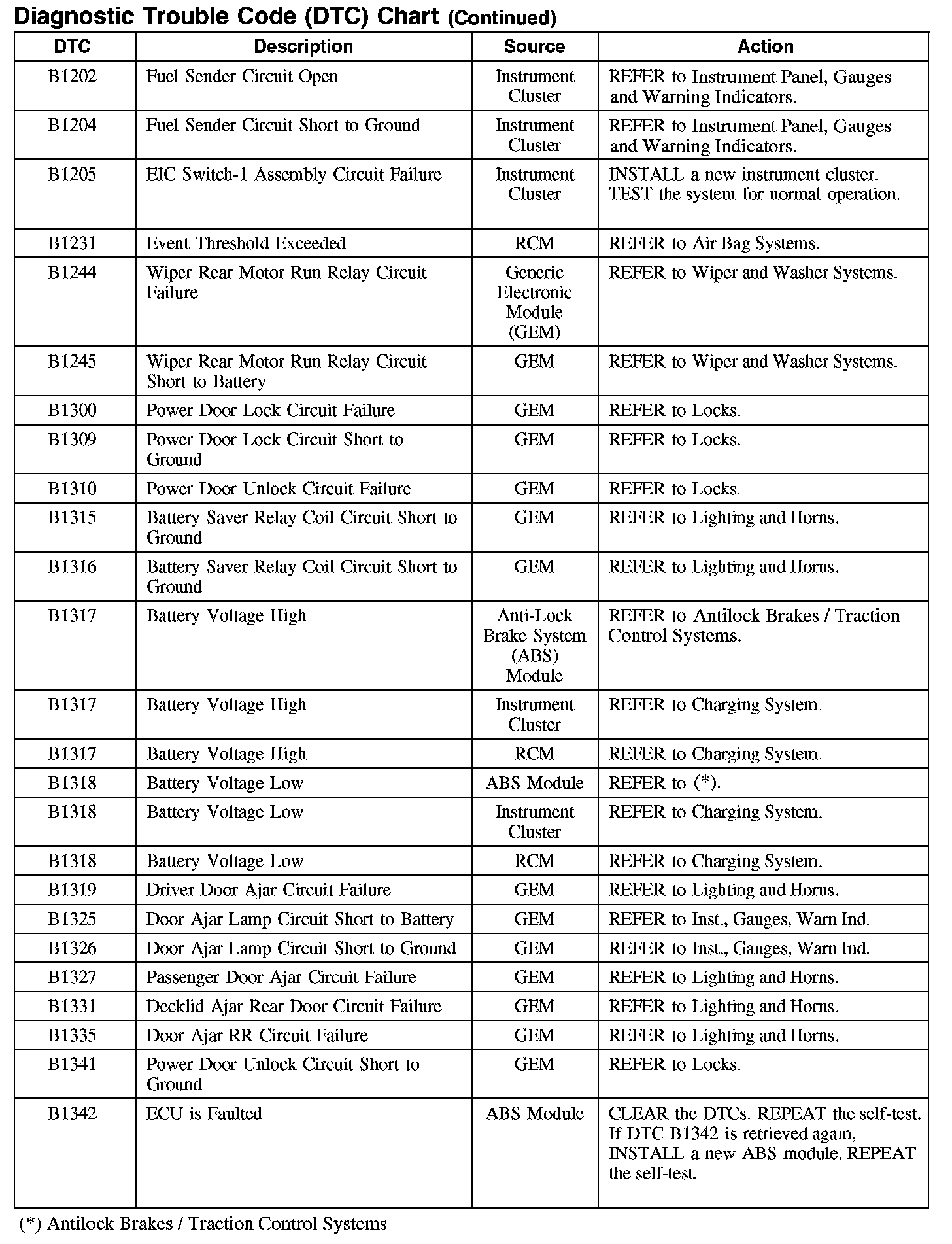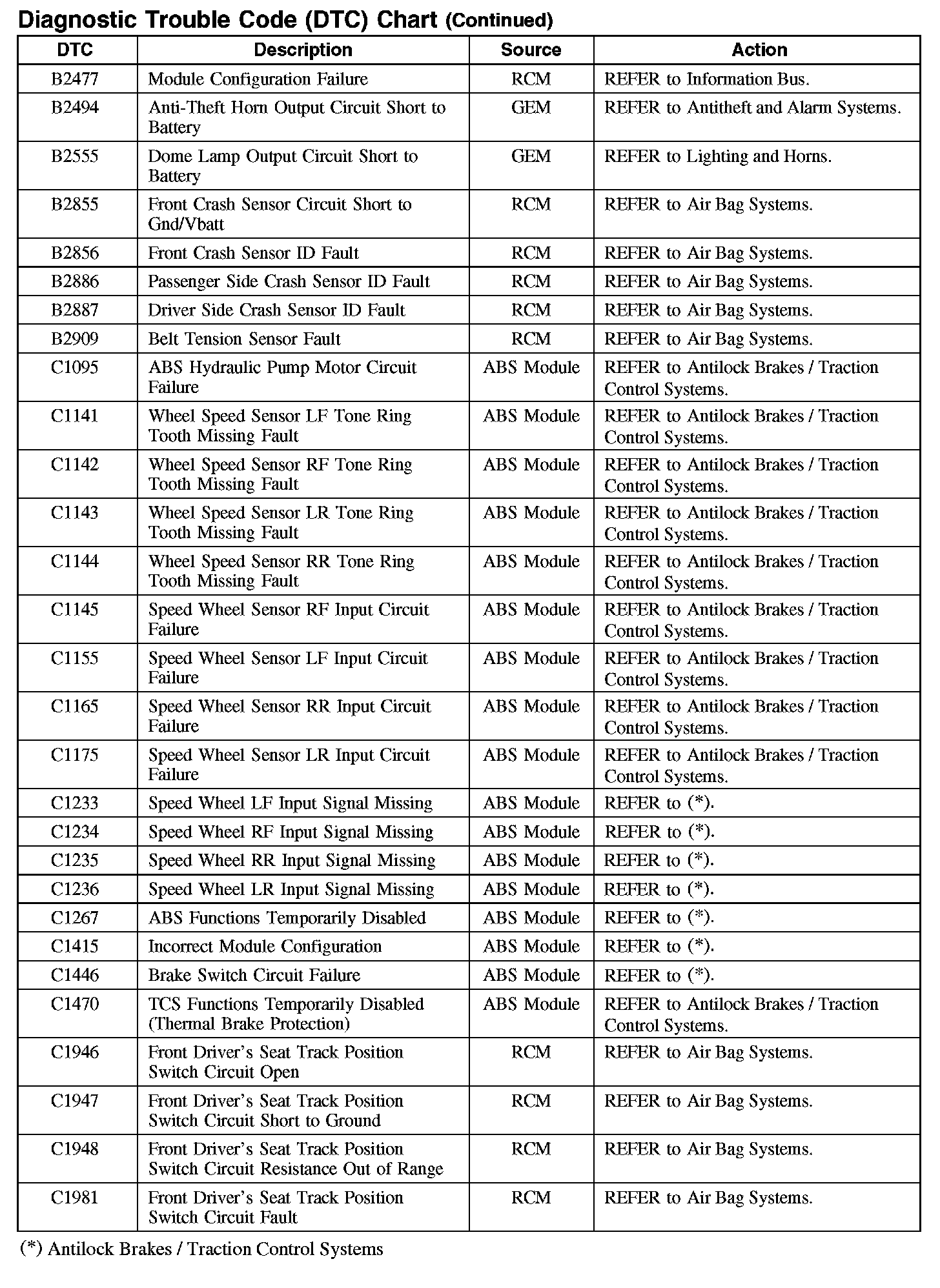 DIAGNOSTIC TROUBLE CODE (DTC) CHART
