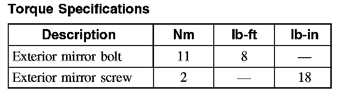 Torque Specifications: