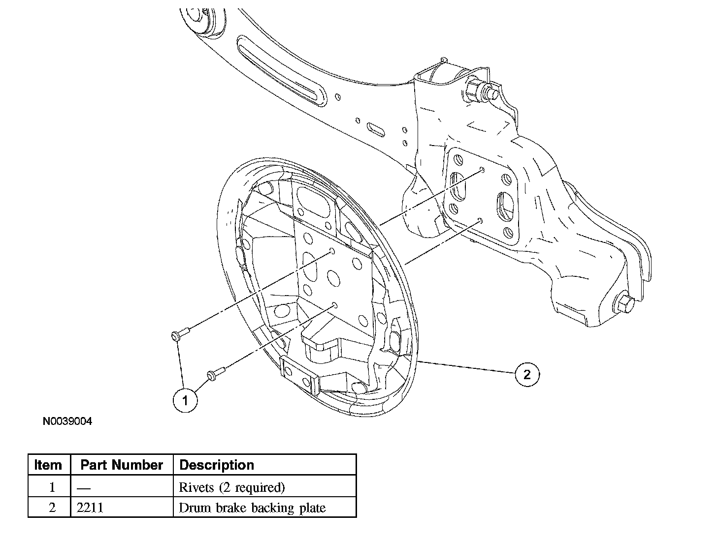 4. Press the retaining clip and disconnect the parking brake cable from the backing plate.