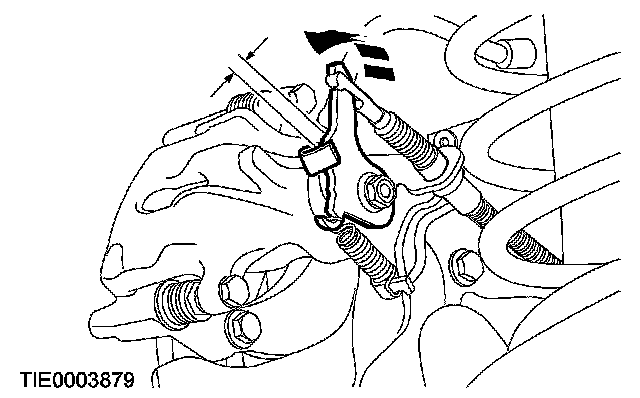 NOTE: The total movement between both the LH side and the RH side caliper parking brake lever and the stop added together should be between 0.5 - 2 mm (0.01 - 0.07 inch).