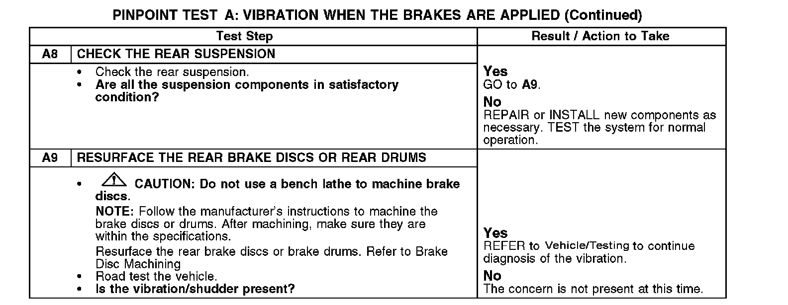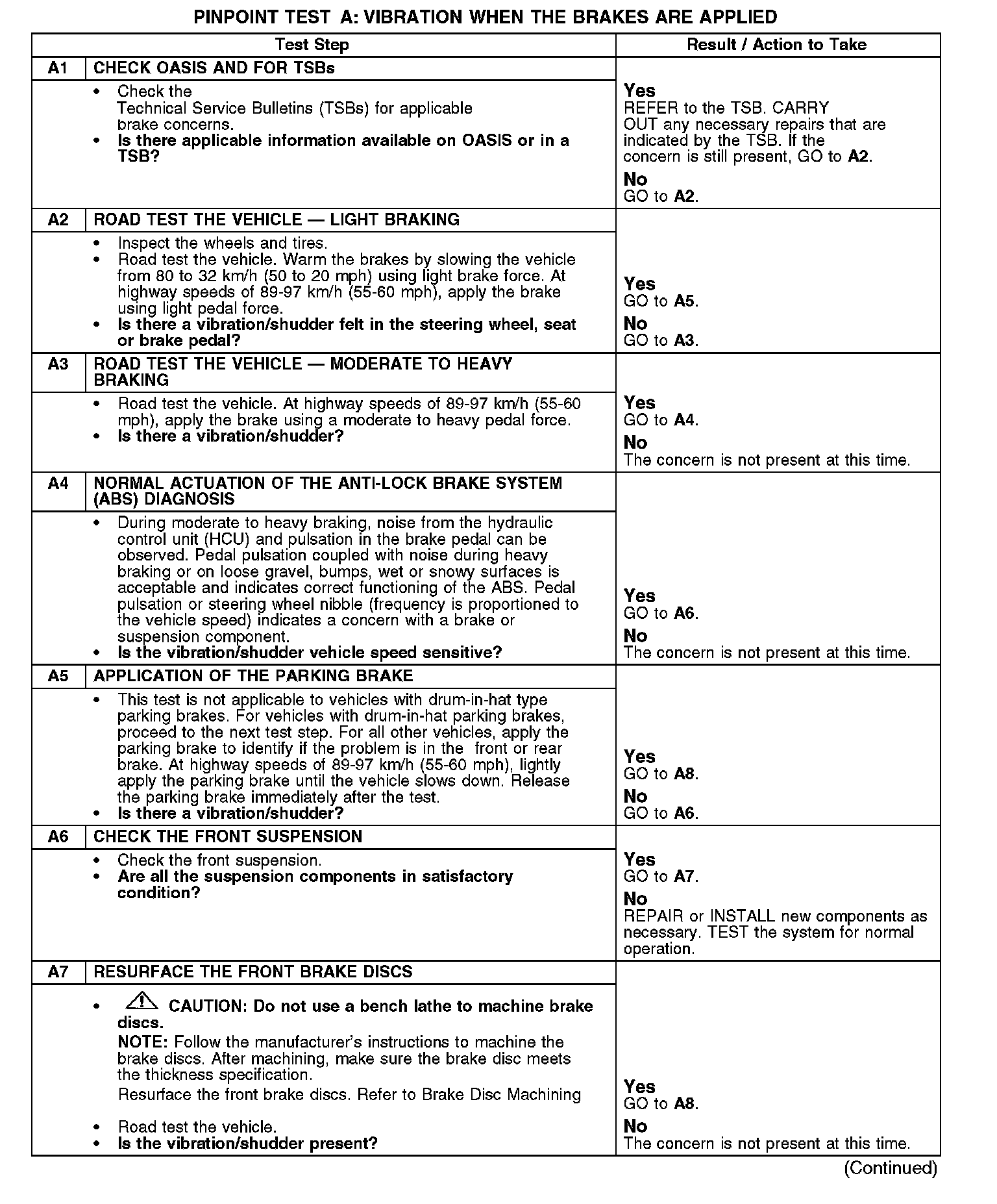 TEST A: VIBRATION WHEN THE BRAKES ARE APPLIED