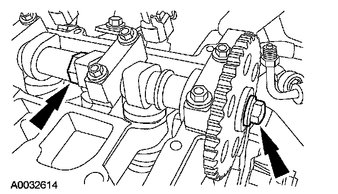 3. If removed, install the camshaft sprockets and the bolts. Do not tighten the bolts at this time.