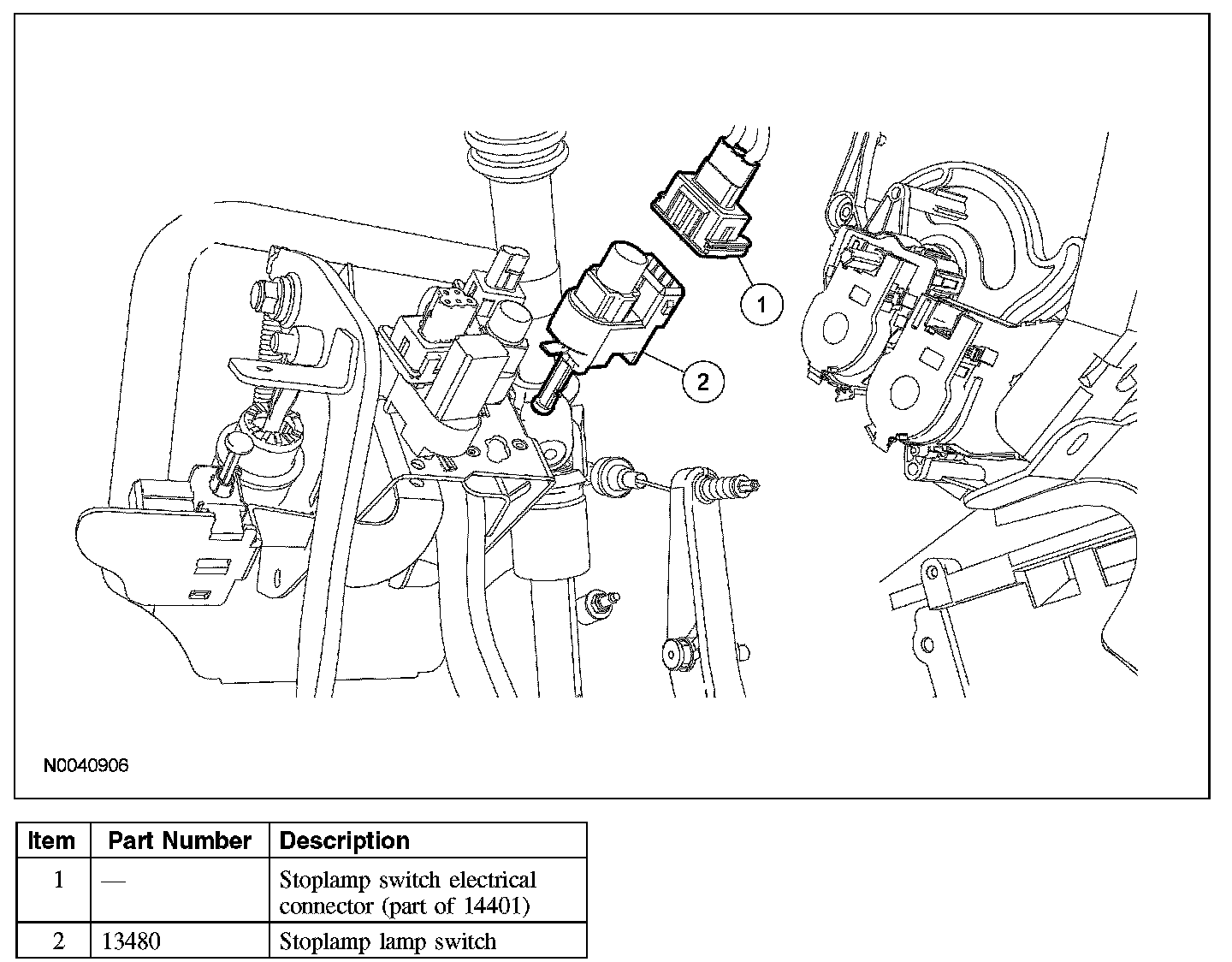 2. NOTE: The brake pedal must be applied while installing the stoplamp switch.