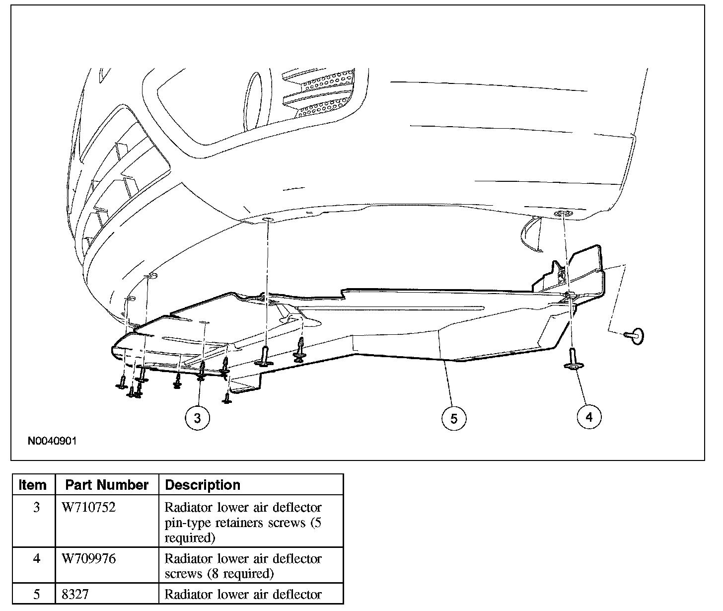 2. Remove the 3 pin-type retainers and the upper radiator air deflector.