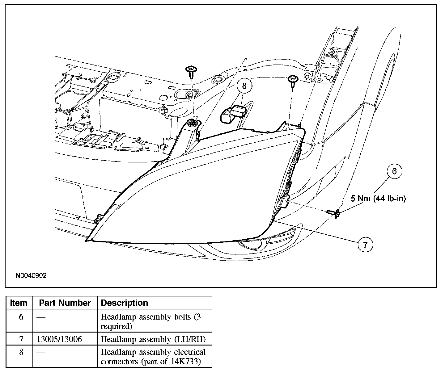 5. NOTE: For the LH headlamp assembly, remove the air cleaner assembly.