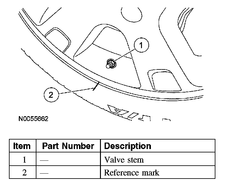 2. Position the wheel and tire assembly on a suitable tire machine and put a reference mark on the tire sidewall at the valve stem position.