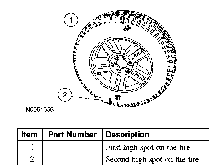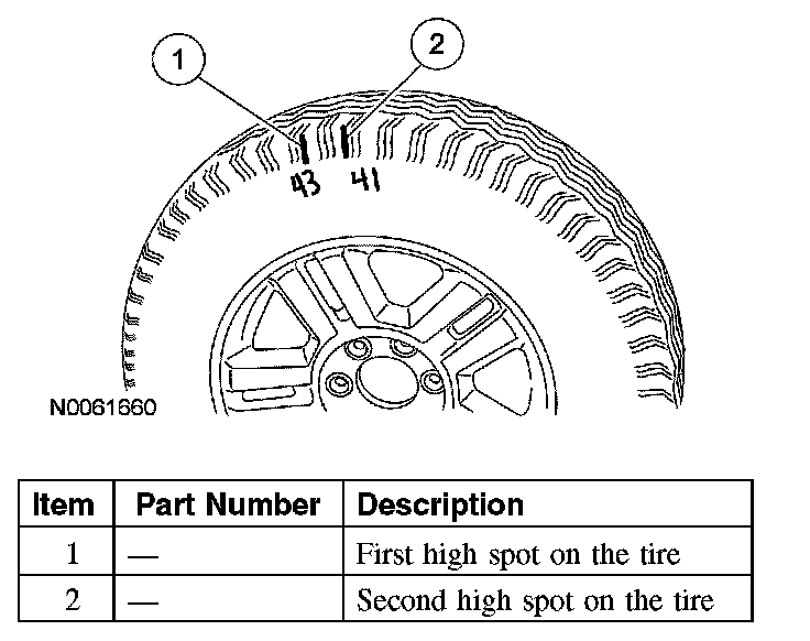 ^ NOTE: To be SURE that the tire is causing the high runout, you must have 2 runout measurements that are not within specification and the high spots must be in approximately the same location on the tire's sidewall. In other words, the high spot followed the tire when it was repositioned 180 degrees on the wheel.