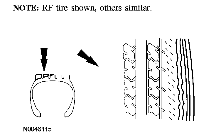 3. Tread wear indicators are molded into the bottom of the tread grooves. Install a new tire when the indicator bands become visible.