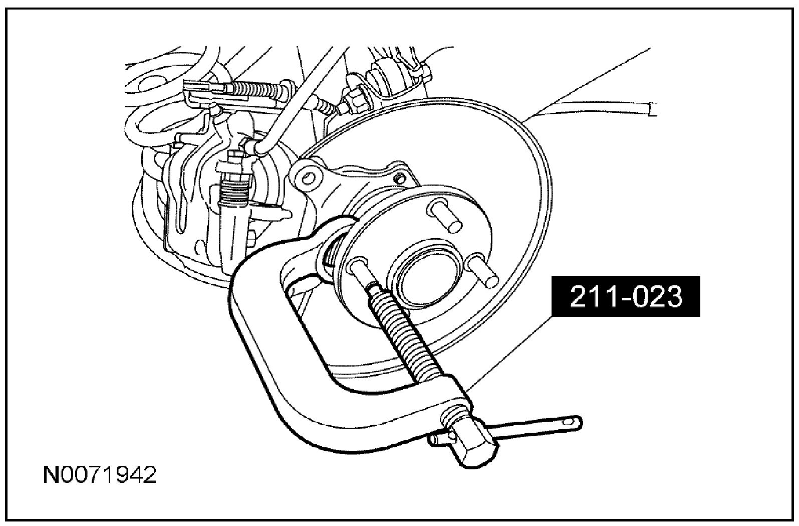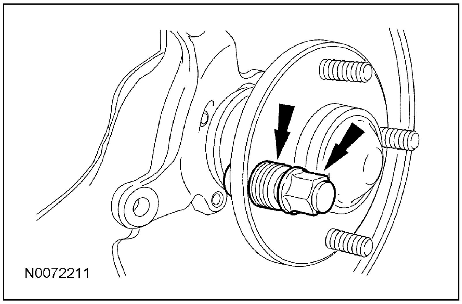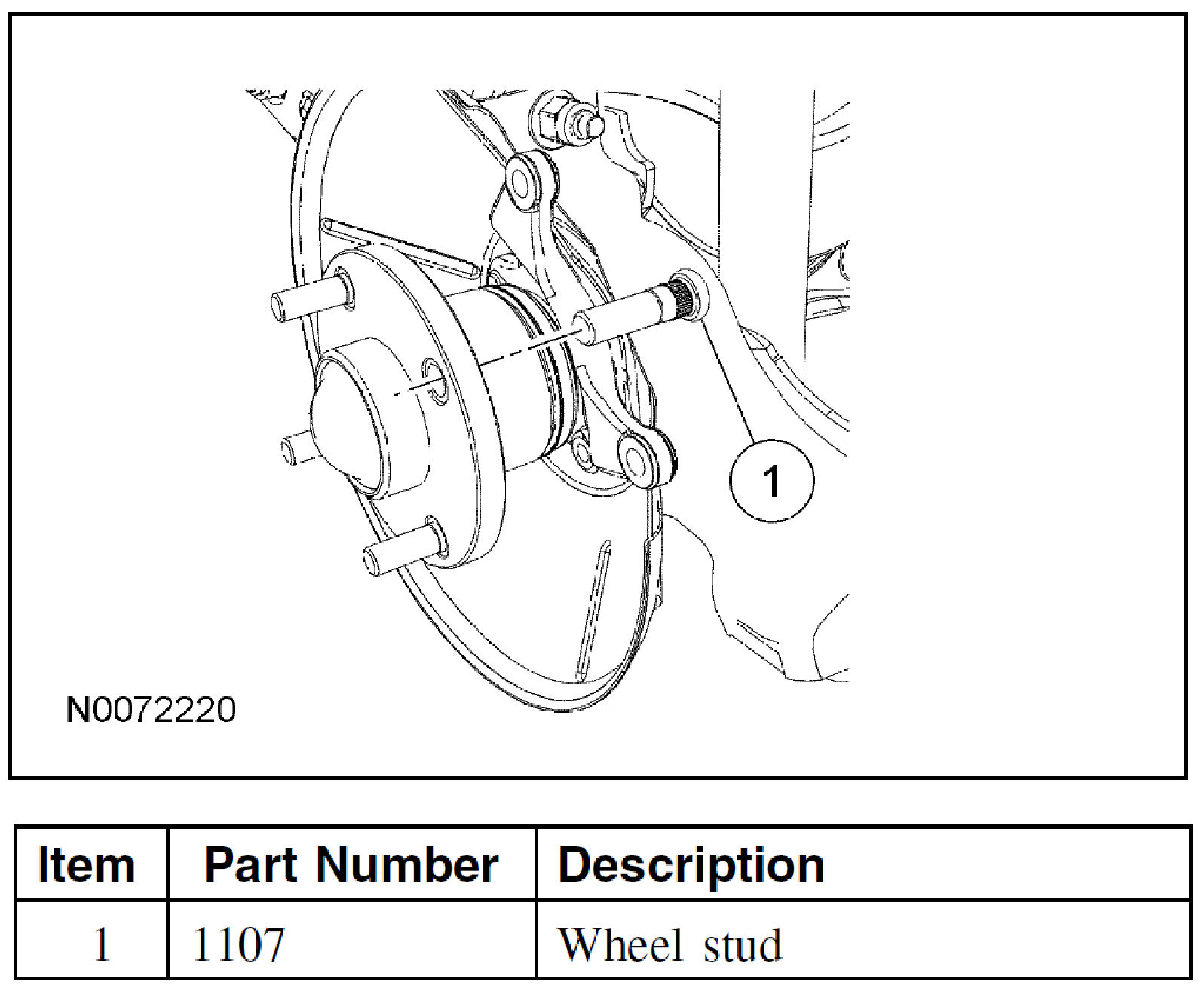 2. CAUTION: Do not use power tools to install the wheel stud or damage to the flange may occur.