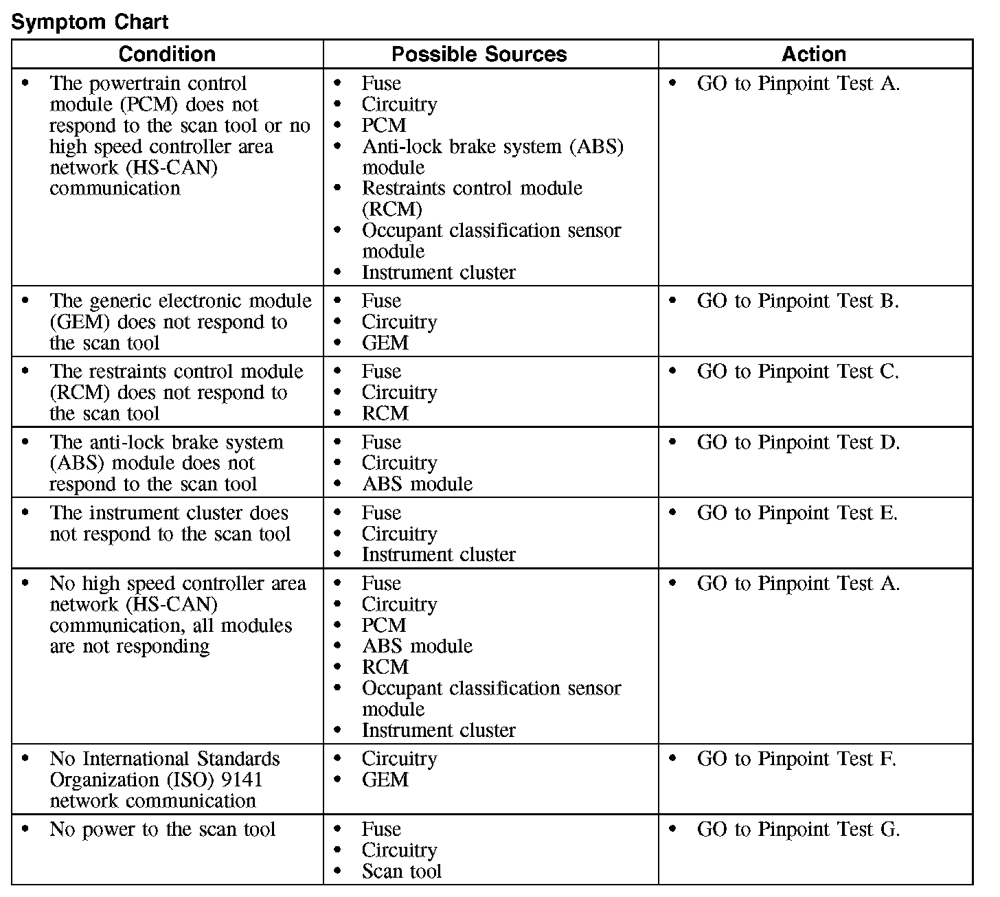 Symptom Chart: