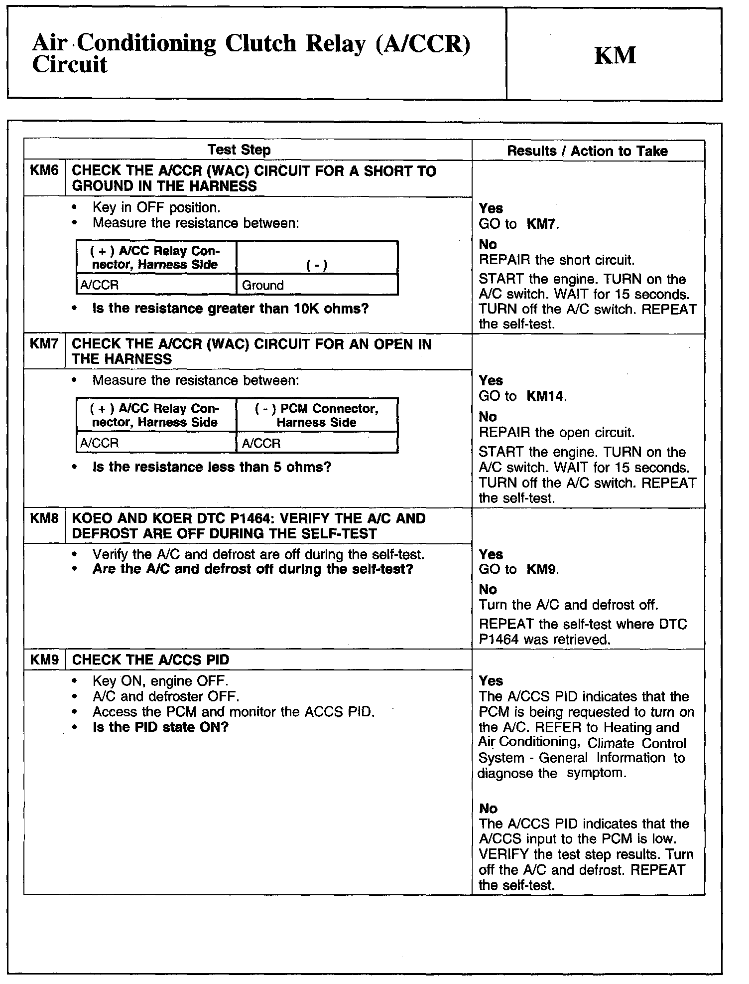 Tests KM: Air Conditioning Clutch Relay (A/CCR) Circuit