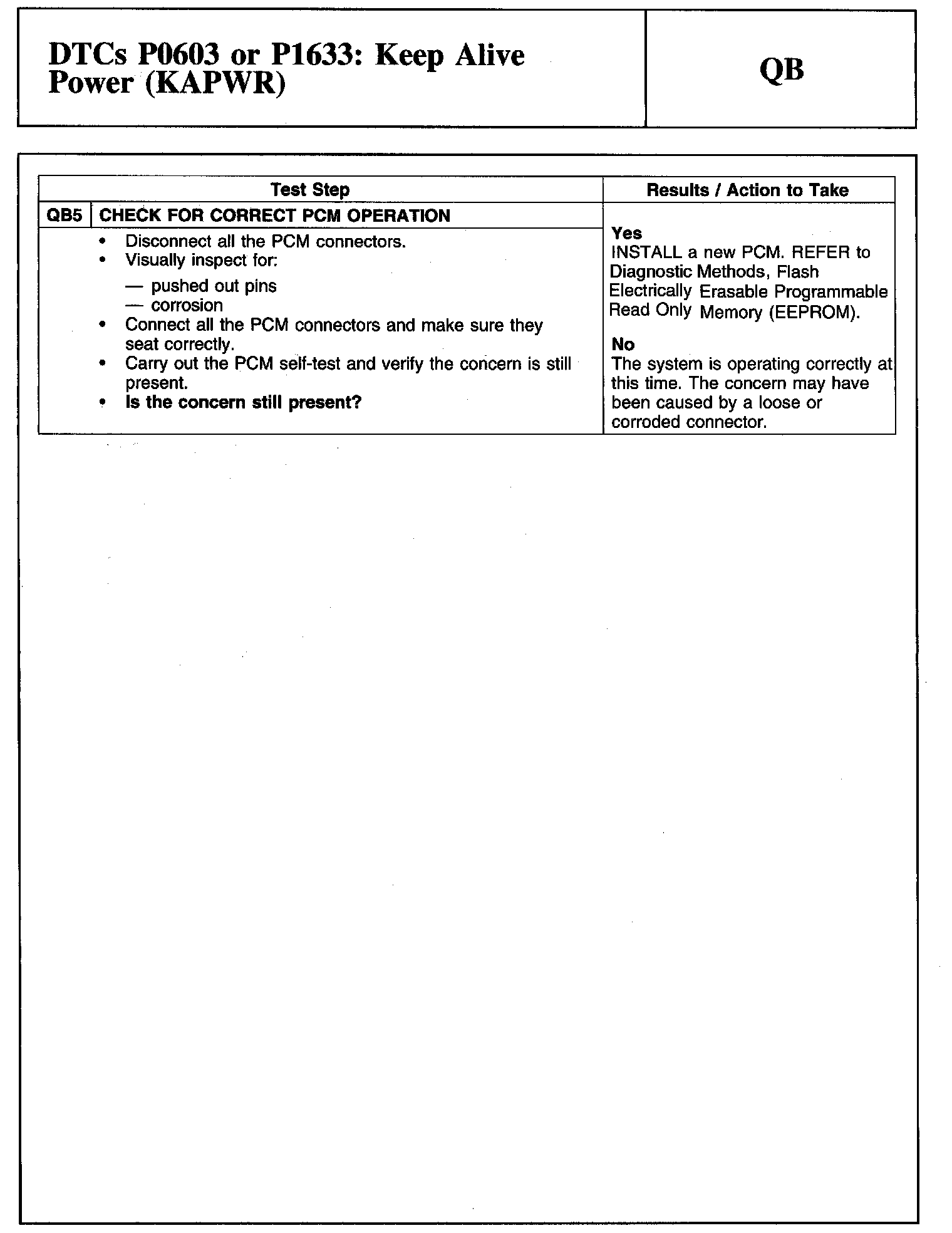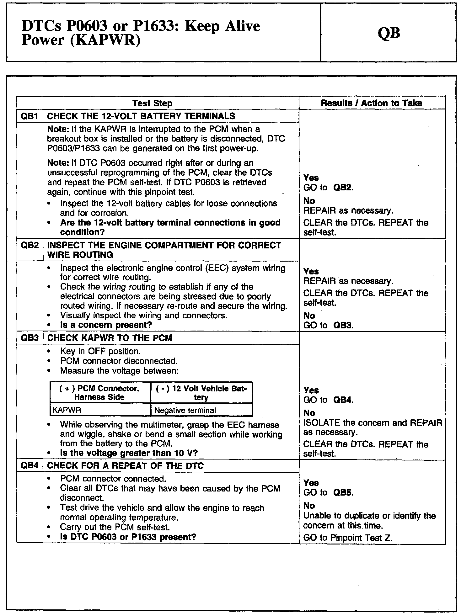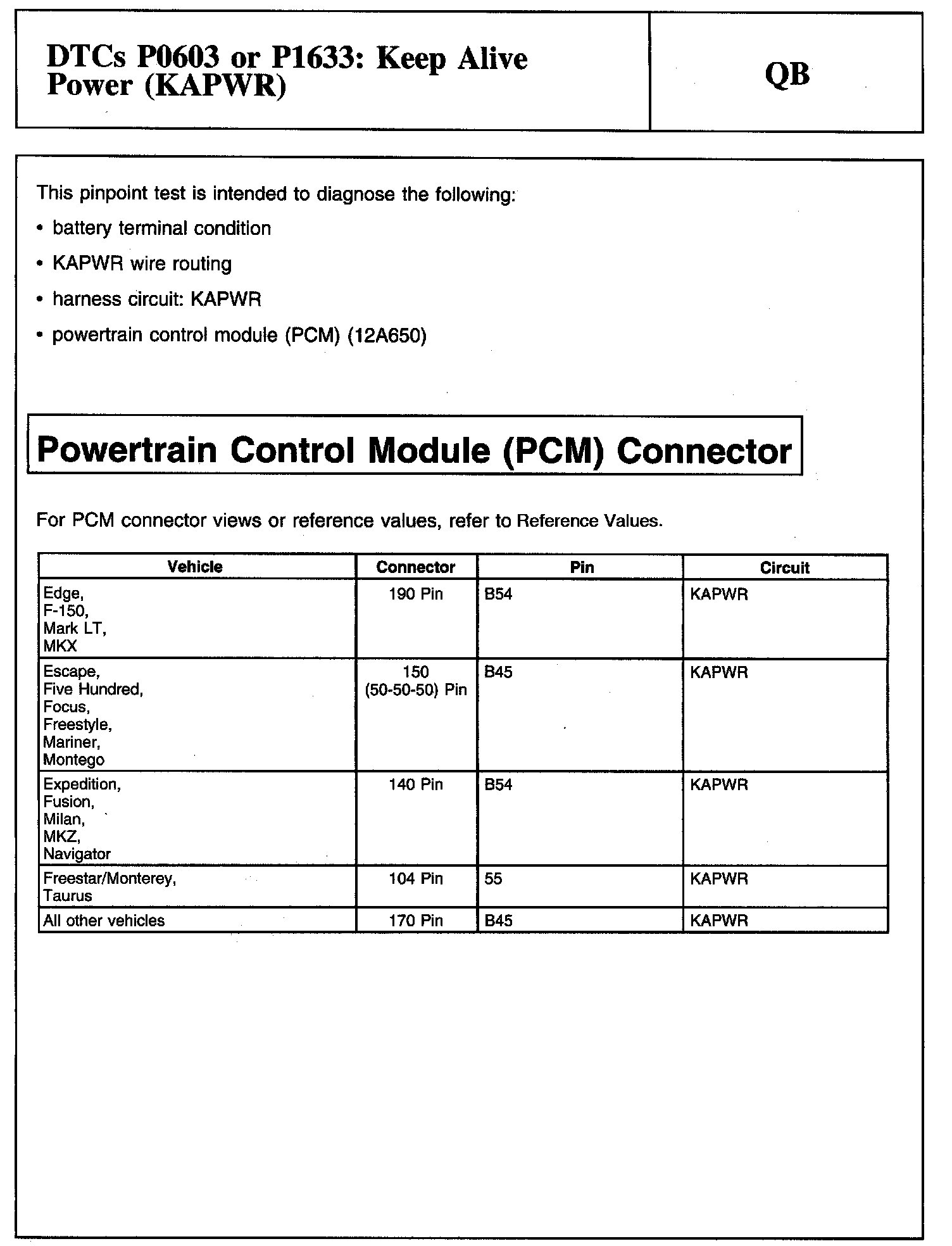 Tests QB: DTCs P0603 or P1633: Keep Alive Power (KAPWR)